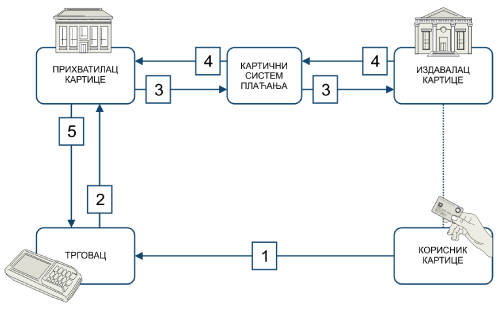Сликовито, ток типичне картичне трансакције изгледа овако: